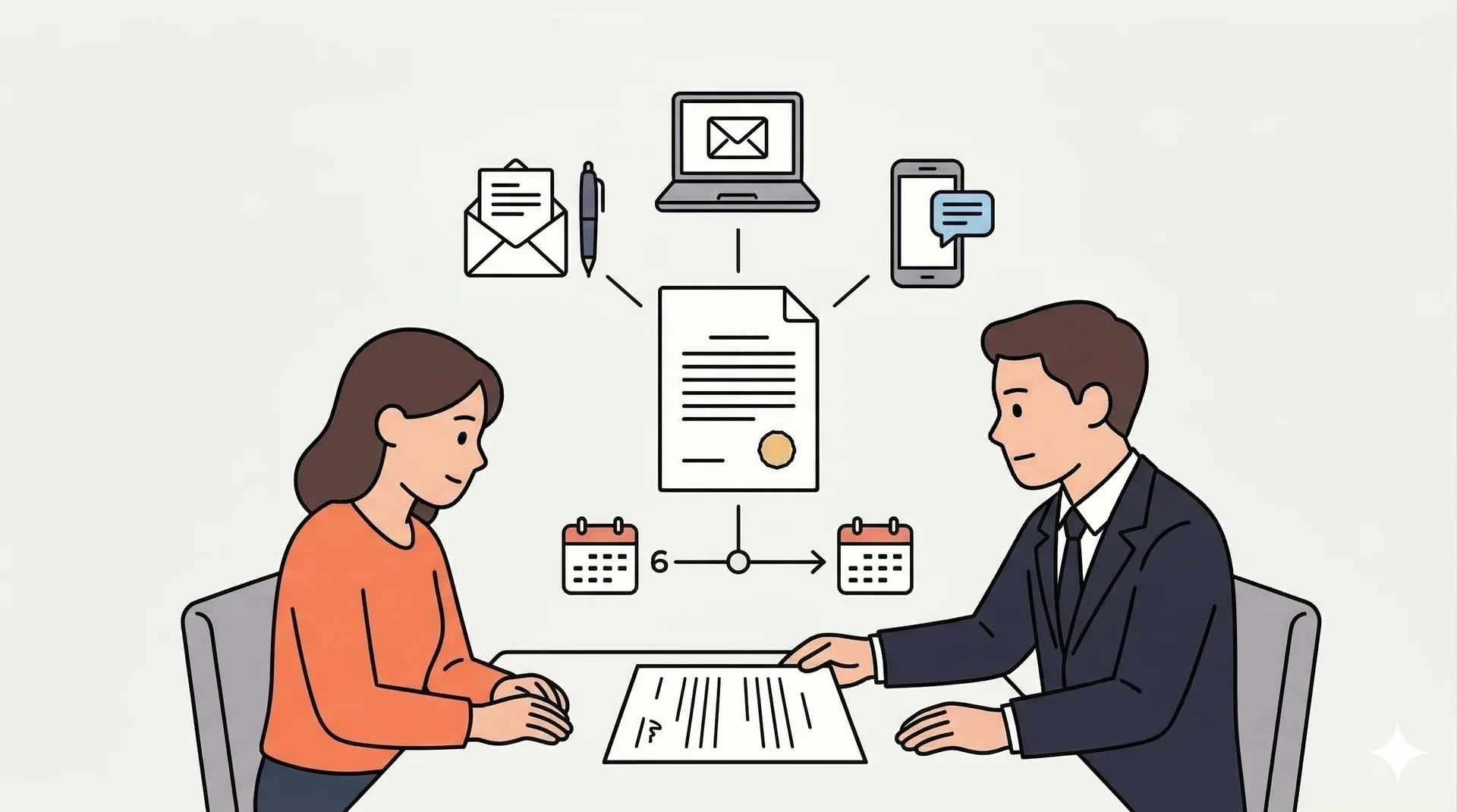 의사표시의 방법에는 제한이 없습니다. 구두, 문자, 카카오톡, 이메일, 내용증명 모두 가능합니다. 하지만 분쟁이 발생했을 때 입증 책임은 '권리를 주장하는 쪽'에 있습니다.